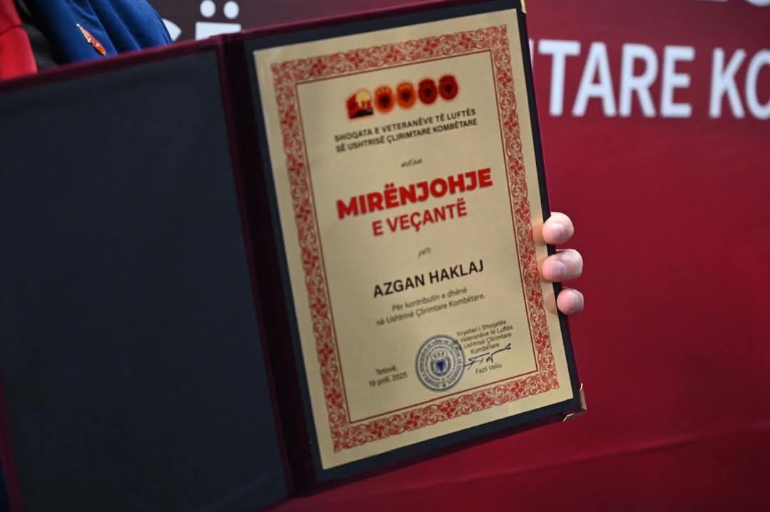Kryetari i Bashkimit Demokratik për Integrim, Ali Ahmeti ka uruar veprimtarin e shquar Azgan Haklaj për dekoratën e merituar nga SHVL-UÇK.