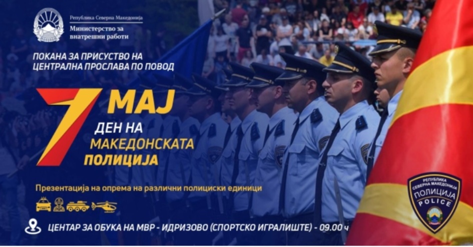 Në Qendrën për Trajnim të MPB-së në Idrizovë (në fushën sportive) sot do të mbahet fFestimi qendror me rastin e Ditës së Policisë së Maqedonisë – 7 Maji.