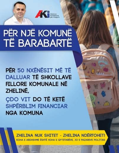 Investimi më i vlefshëm është tek dija!” – me këtë mesazh kandidati për kryetar të Komunës së Zhelinës nga radhët e Aleancës Kombëtare për Integrim (AKI), Emir Sulejmani, ka prezantuar një nga premtimet e tij kryesore për arsimin informon Tetovasot.