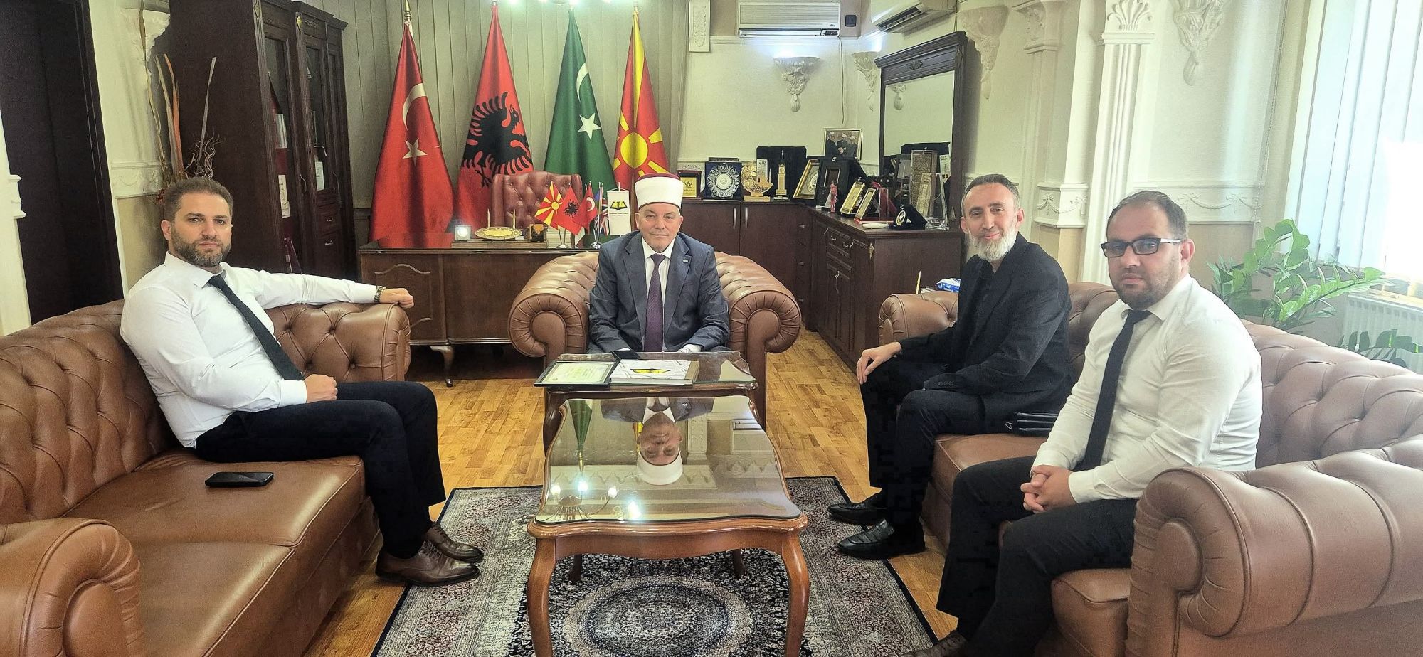 Kryetari i Bashkësisë Fetare Islame të RMV-së, Reisul Ulema H. hfz. Shaqir ef. Fetahu, i shoqëruar nga Drejtori për Diasporë, Mr. Mafiz Rustemi, dhe Drejtori për Kulturë dhe Shkencë, Mr. Musanif Rufati, priti në kabinetin e tij imamin e xhamisë “Ikra” në Emsdetten të Gjermanisë, H. Sedat ef. Shabanin.