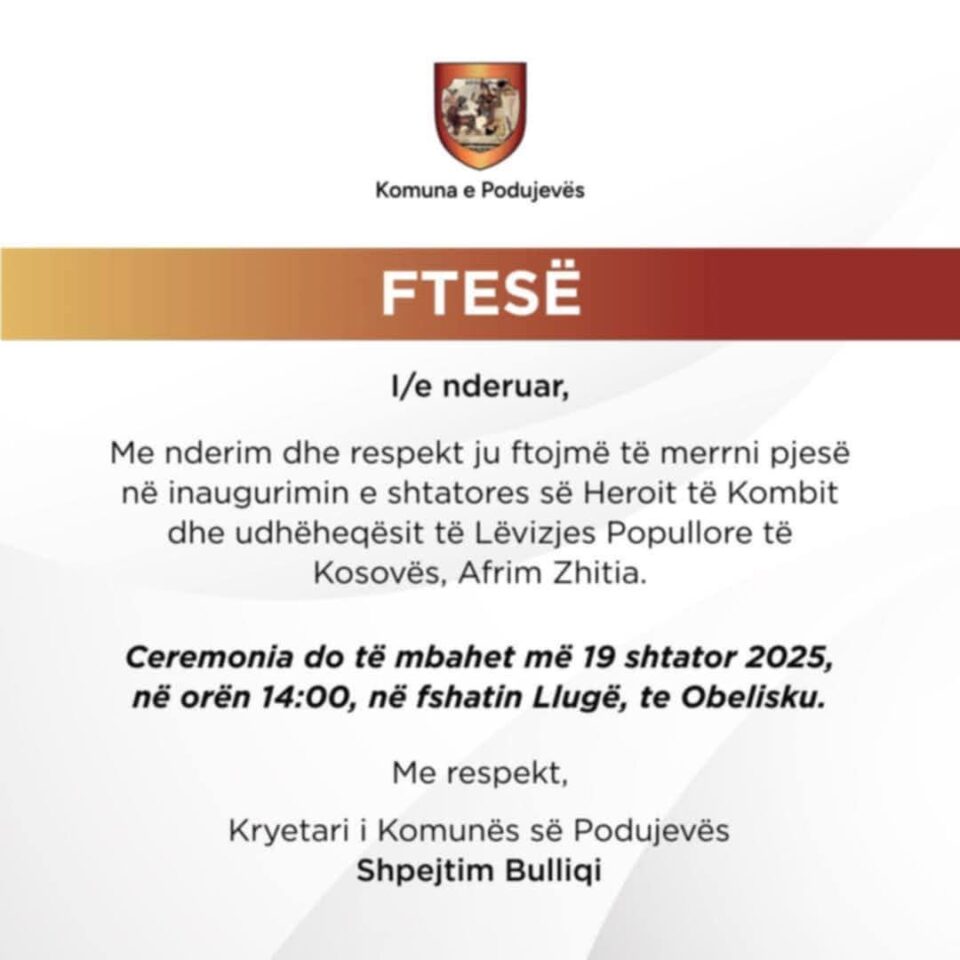 Nga dita e premte, data 19 shtator, drita do ta mund natën me yjet që ndryçojnë lirin, me Përmendoren Afrim Zhitia, udhërrëfyes i gjeneratës ma të sakrifikuar të gjysëm-shekullit të fundit!