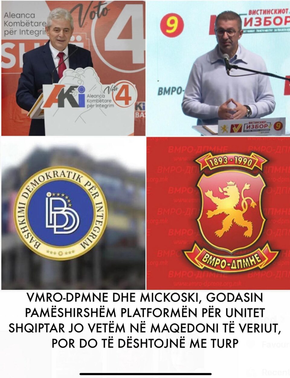 Garës kundër unitetit politik e kombëtar shqiptar i prinë Partia politike VMRO-DPMNE dhe Kryetari i saj e Kryeministri i Maqedonisë së Veriut Hiristijan Mickoski dhe partitë tjera të kalicionit qeverisës!