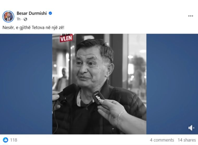 AKTUALEMinistri i Ekonomisë dhe punës, Besar Durmishi shkel heshtjen parazgjedhore October 18, 2025October 18, 2025094 Share0 Pas bartësit të listës për këshillin komunal të Tetovës heshtjen parazgjedhore e ka shkelur edhe Ministri i Ekonomisë dhe Punës, njëherit shef i shtabit komunal në Tetovë, Besar Durmishi i cili ka publikuar një video anketë.