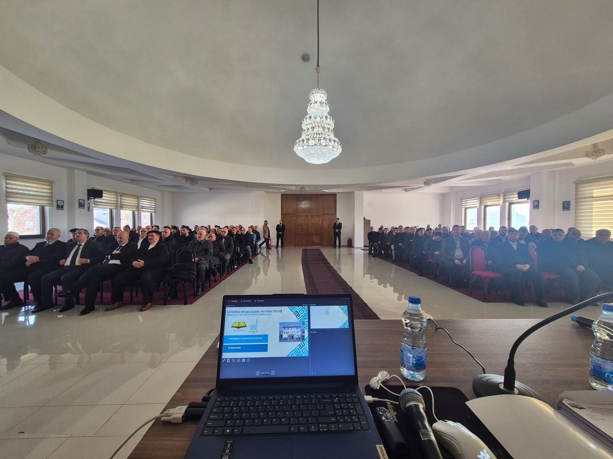 Ju falënderoj sinqerisht që jeni sot këtu. Jemi mbledhur në një moment të rëndësishëm: përmbylljen e mandatit tuaj 4 vjeçar si këshilltarë dhe vlerësimin e punës që keni bërë gjatë kësaj periudhe. Është nder për mua të qëndroj para jush dhe t’ju shpreh mirënjohjen time për angazhimin dhe përkushtimin që keni treguar ndaj organizimit të jetës fetare, ndaj myftinisë, ndaj xhamisë, mektebit, hoxhallarëve dhe besimtarëve në përgjithësi.