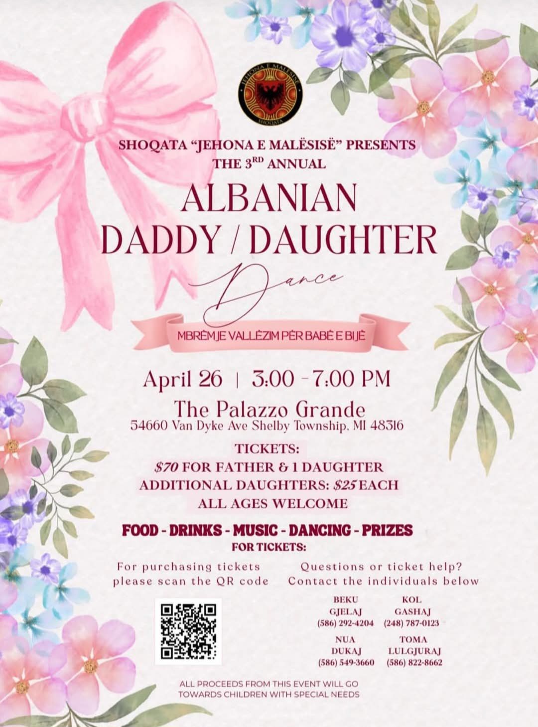 Kjo ngjarje do të mbahet më 26 prill, nga ora 3:00 deri në 7:00 pasdite, në ambientet prestigjioze tek The Palazzo Grande, në adresën 54660 Van Dyke Ave, Shelby Township, MI 48316.
