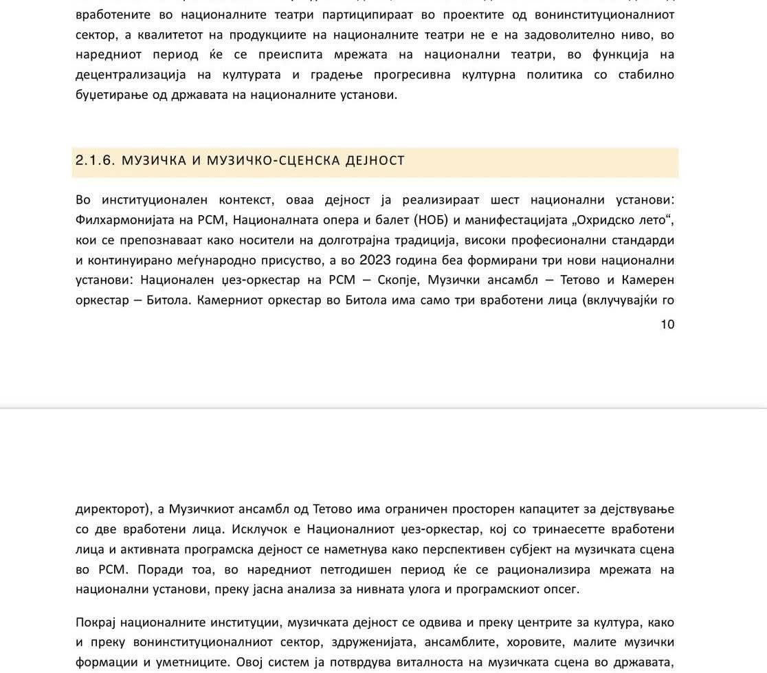 Ndër projektet që i anashkalojnë shqiptarët, parashikohet edhe mbyllja e Ansamblit muzikor në Tetovë – jo thjesht një institucion, por një simbol i identitetit dhe krijimtarisë shqiptare. Ta mbyllësh këtë Ansambël do të thotë të godasësh drejtpërdrejt kulturën dhe dinjitetin tonë.