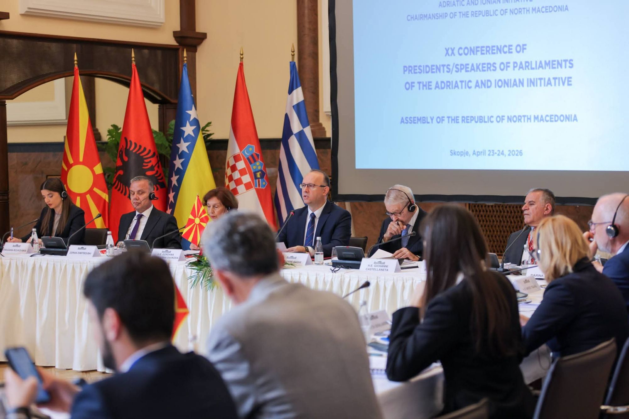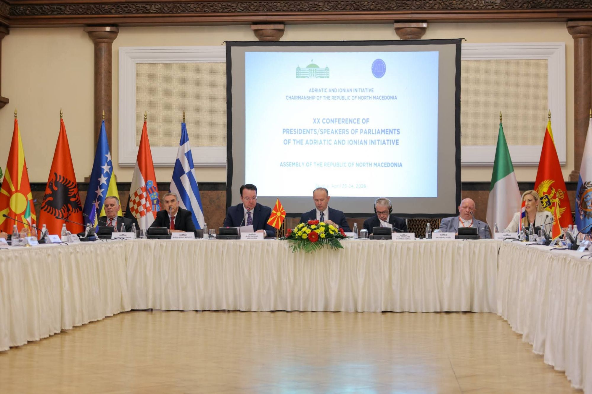 Me një pritje madhështore në Etno Fshatin e Maqedonisë, ku mbrëmë vizituam edhe manastirin më të vjetër të krejt rajonit, përfunduam Konferencën XX të kryetarëve/kryesuesve të parlamenteve të Nismës Adriatiko-Joniane, mbajtur në Shkup, më 23 dhe 24 prill 2026.